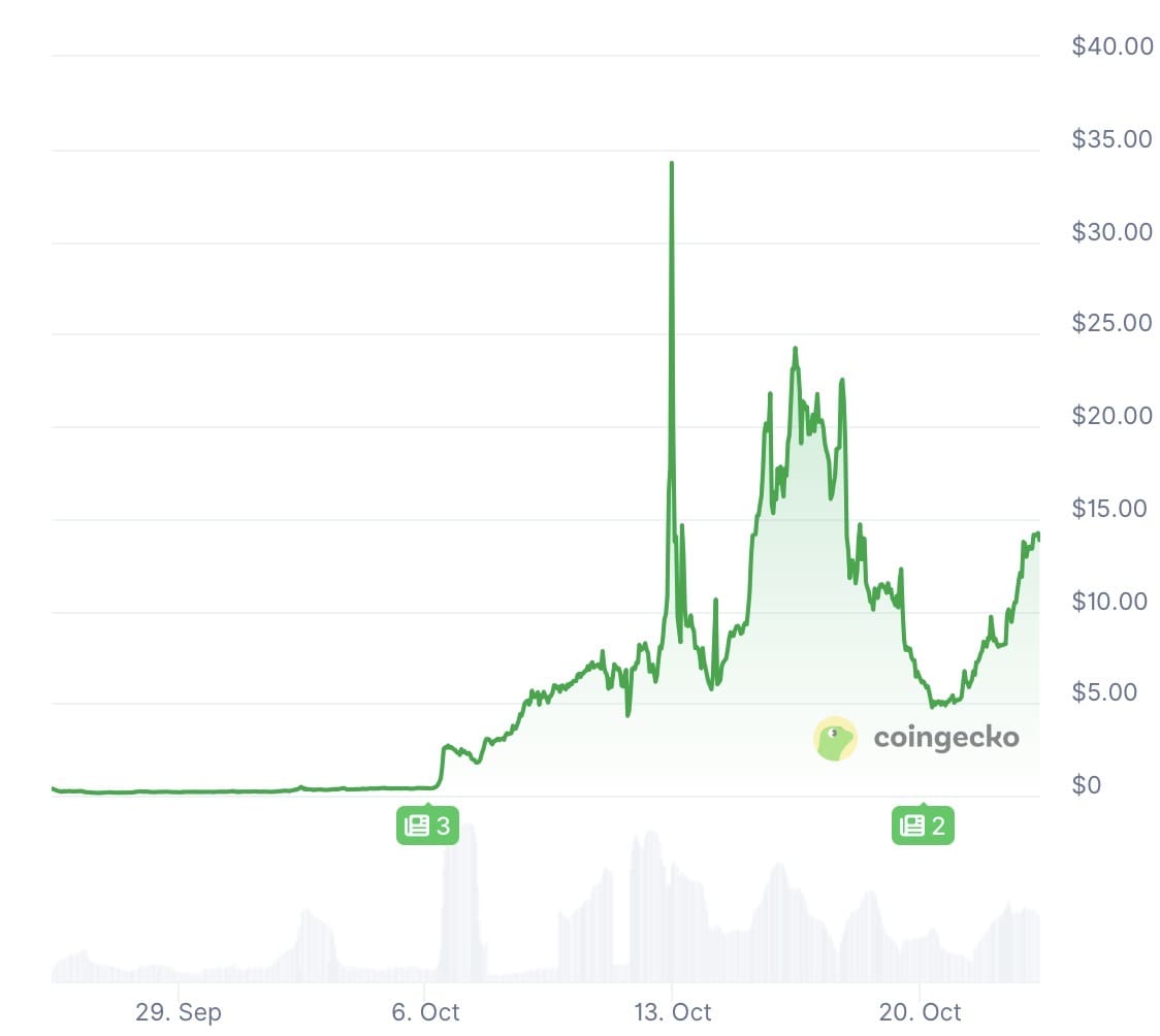 Die Kryptowährung wurde vor noch nicht einmal einem Monat eingeführt und ist seitdem stark gestiegen, aber auch gefallen. Vor einer Woche erreichte der Kurs einen Höhepunkt von mehr als 34 Dollar.