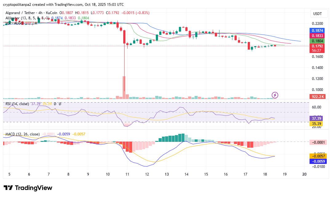 Die technische Struktur deutet darauf hin, dass sich Pi nach einer Rallye von fast 78 % konsolidiert und ein mögliches Fortsetzungsmuster bildet. Kurzlebige Kerzen und lange obere Dochte spiegeln kurze Gewinnmitnahmen wider, aber Momentum-Indikatoren begünstigen weiterhin die Bullen. Die 4-Stunden-EMAs bleiben positiv ausgerichtet und bestätigen, dass Pi eine gesunde Trendtendenz über 0,240 $ hat.