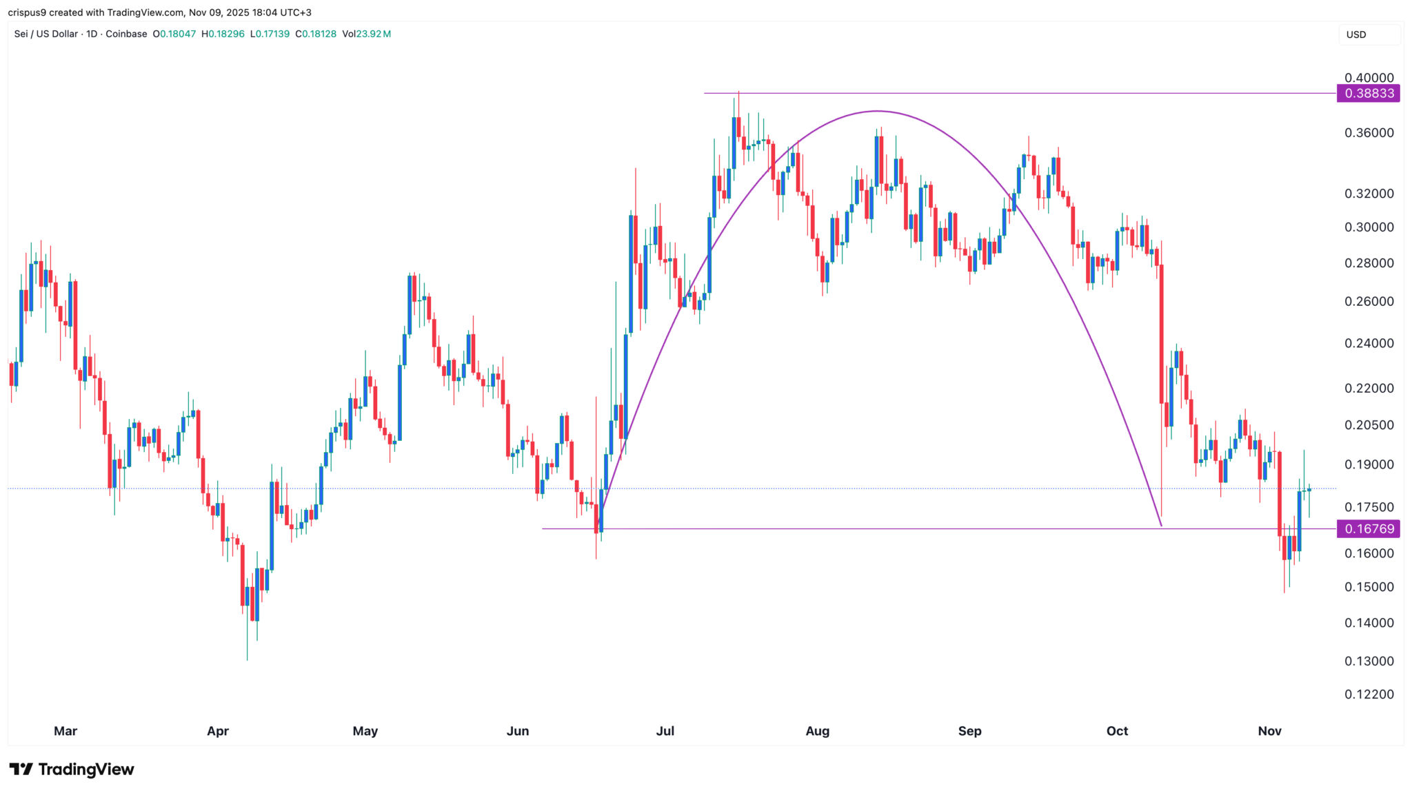 Sei, eine Top-Layer-1-Plattform, ist in den letzten Monaten unter Druck geraten und von einem Höchststand von 0,388 $ im Juni auf 0,1800 $ heute gefallen.