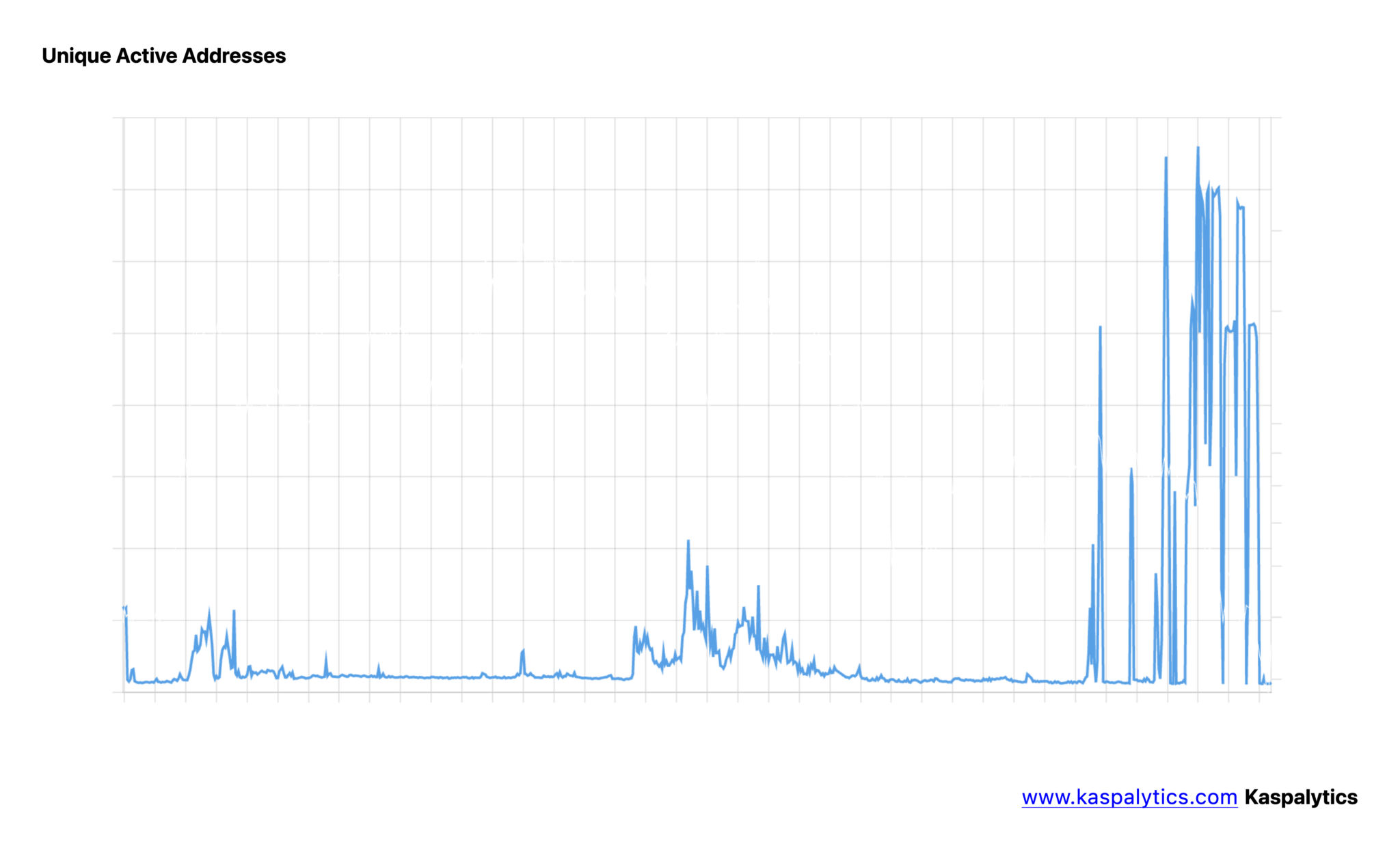 Auch die zugrunde liegende Aktivität von Kaspa steigt weiter an. Der jüngste Anstieg der einzigartigen aktiven Adressen spiegelt die zunehmende Nutzung des Netzwerks wider, selbst in den Monaten der Kursschwäche.