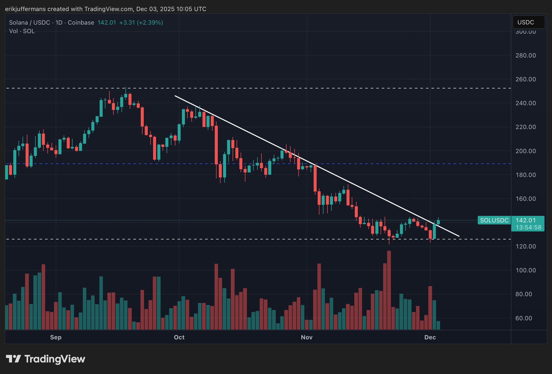 Endlich sehen wir wieder starke Kursanstiege am Kryptomarkt, wie du heute Morgen bereits im Krypto-Wecker im Krypto-Newsüberblick lesen konntest. In der Top 10 fällt vor allem Solana (SOL) mit einem Plus von mehr als 12 Prozent auf über 140 Dollar auf. SOL war seit dem Hoch im September um 50 Prozent gefallen, daher ist diese Erholung hoch willkommen. Newsbit-Technikanalyst Erik Juffermans teilt nun seine Einschätzung.