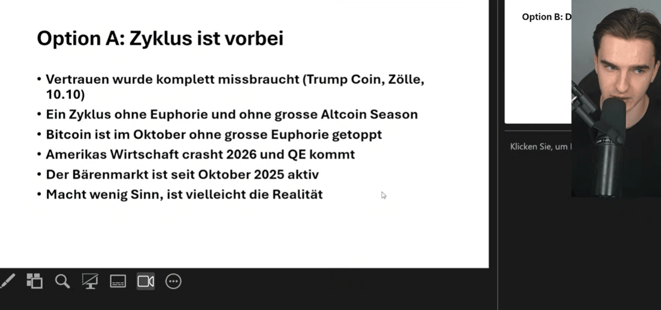 Am Ende gibt es nur zwei realistische Optionen. Entweder dieser Zyklus ist bereits vorbei oder er läuft weiter, nur anders als viele es erwartet hatten. Die Unsicherheit entsteht nicht aus fehlender Analyse, sondern aus widersprüchlichen Signalen.