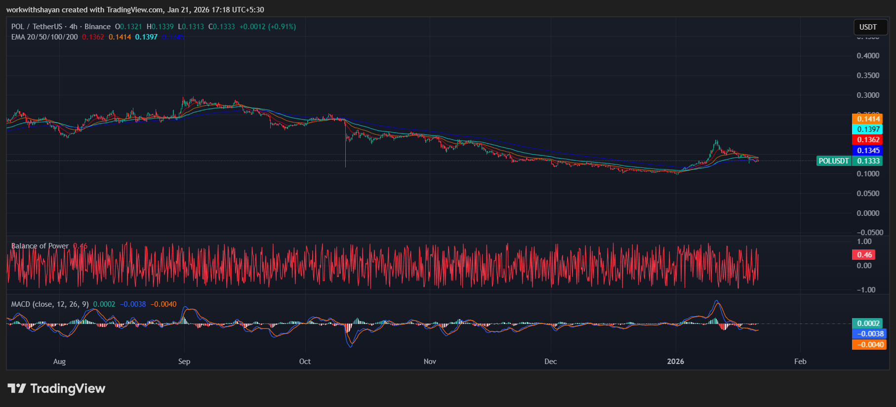 - Der POL-Preis steht unter Abwärtsdruck in Richtung 0,133 $.