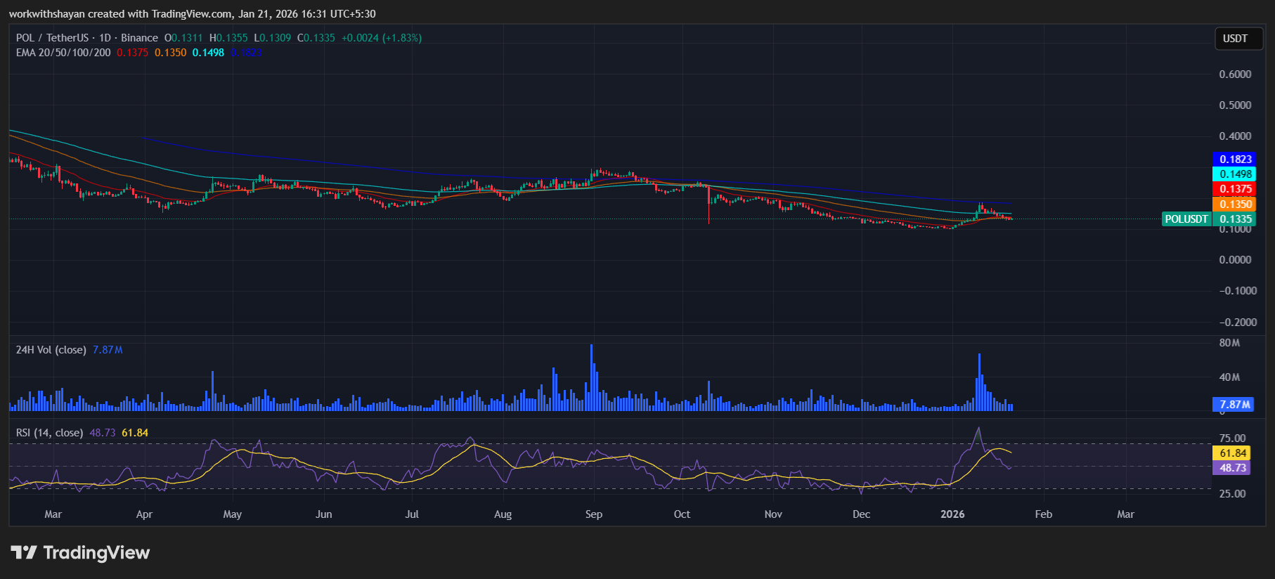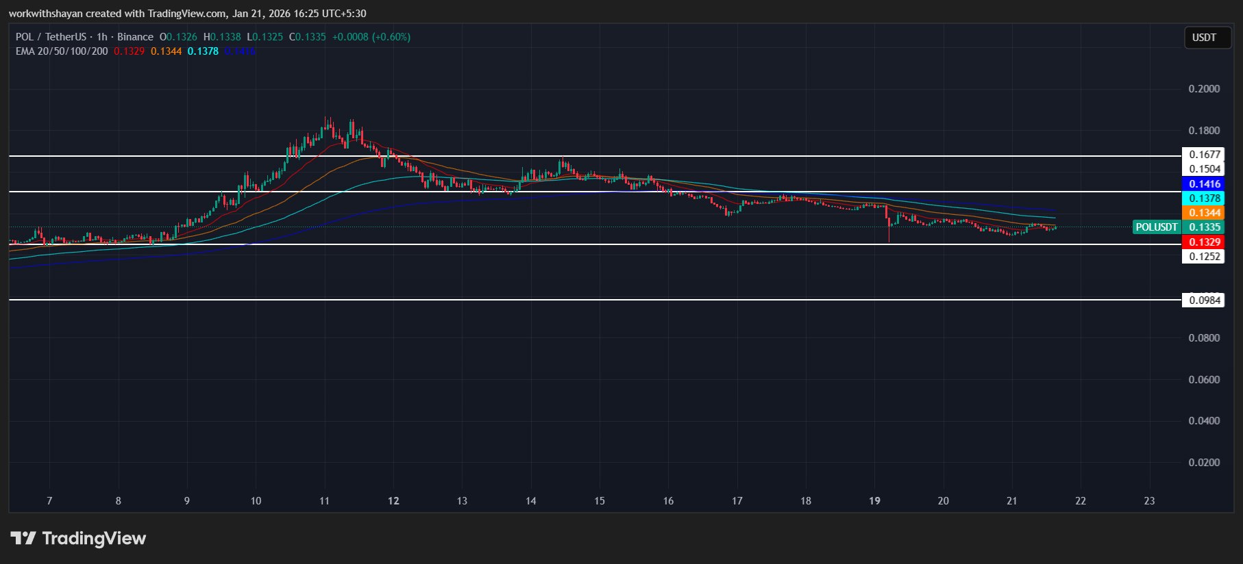 Die POL-Preisanalyse vom 21. Januar bestätigt, dass die Volatilität von POL mit sinkenden Kursen in Richtung 0,133 US-Dollar abnimmt. Käufer spekulieren jedoch auf eine anschließende Erholung
