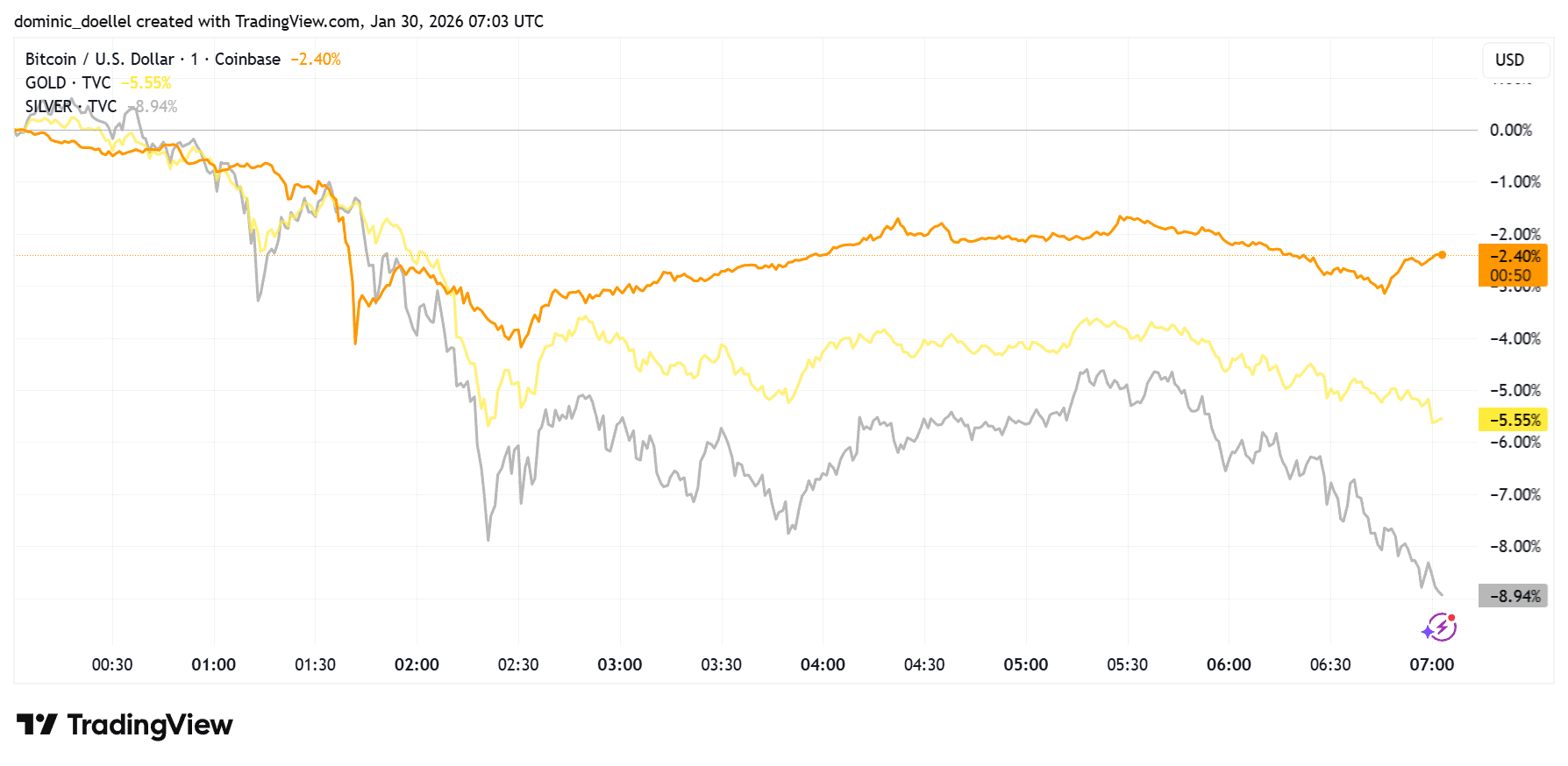 Nicht nur Bitcoin korrigiert, auch Gold und Silber lassen federn I Quelle: Tradingview