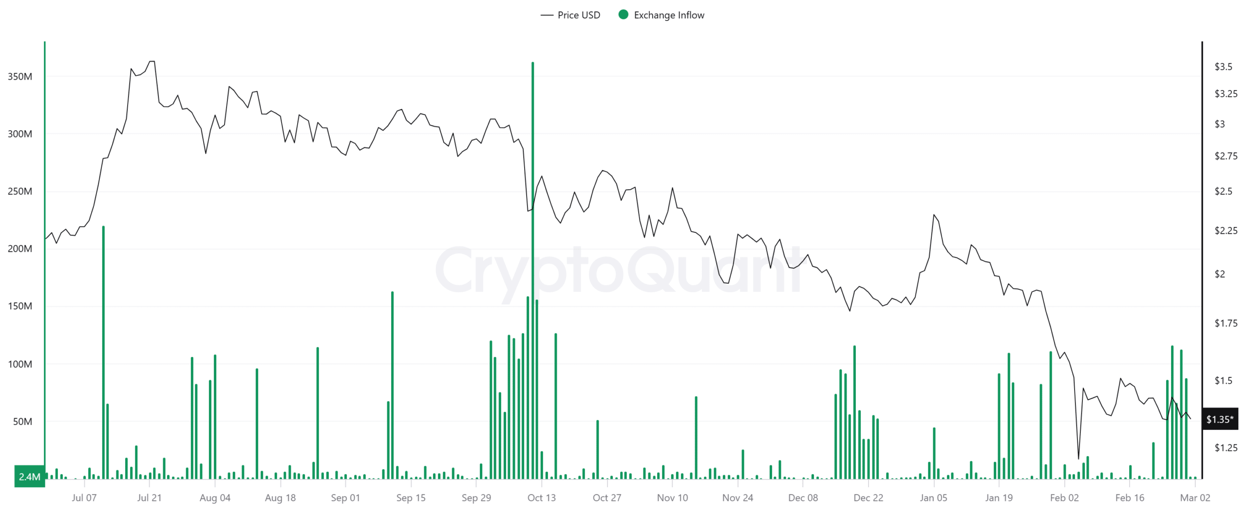 - Exchange-Zuflüsse: In der vergangenen Woche wurden 472 Millionen $XRP (ca. 650 Millionen US-Dollar) auf Binance transferiert – der höchste Wert im Februar 2026.
