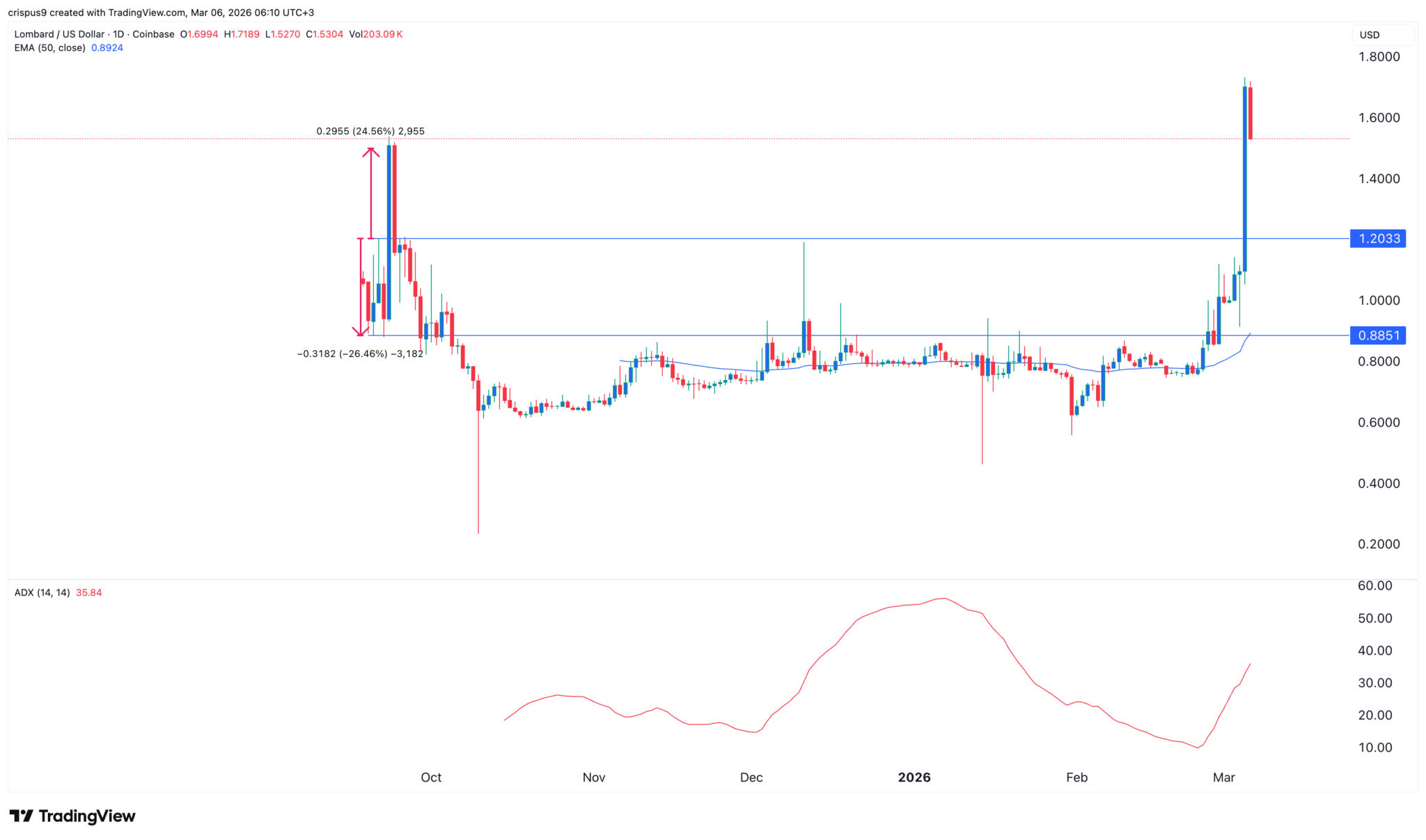 Lombard-Kurs-Chart | Quelle: TradingViewDaher ist die wahrscheinlichste Lombard-Kursprognose bärisch, da der Token in die Distributions- und Markdown-Phase eintreten wird. In diesem Fall liegt das nächste wichtige Niveau bei 1,20 USD, dem höchsten Stand im Dezember.