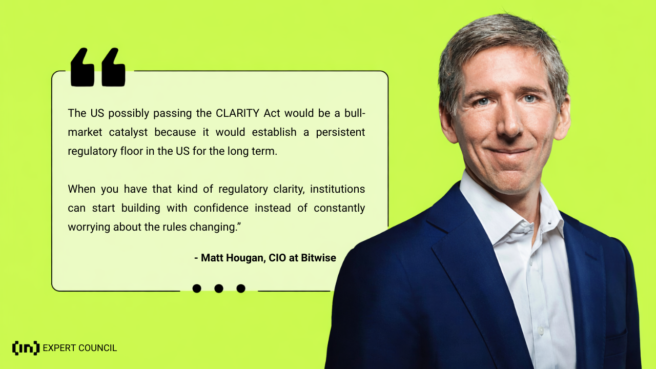„Der Aufstieg von Agentic Finance als neues Narrativ für Krypto, darauf aufzubauen, ist meiner Meinung nach ein großer neuer Auslöser“, sagte Matt Hougan.