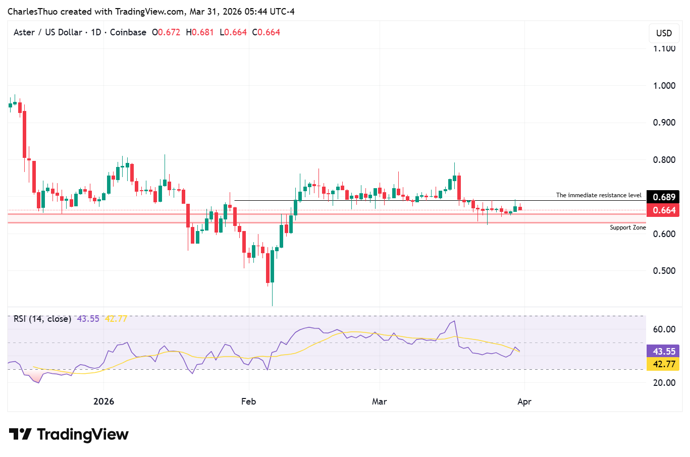 Zum Zeitpunkt der Erstellung dieses Artikels handelt $ASTER nahe dem $0.66-Niveau, hält eine wichtige Unterstützungszone und versucht, in einem vorsichtigen Gesamtmarkt Momentum aufzubauen.