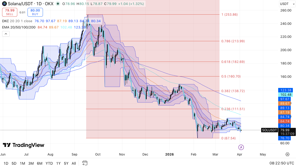 Solanas Preisausblick hängt davon ab, wie Käufer die 79-Dollar-Unterstützungszone verteidigen. Wenn die Käufer die Kontrolle behalten und über 89–90 $ steigen, könnte das Momentum sich in Richtung 95 $ und 100 $ stärken. Darüber hinaus könnten steigende Zuflüsse und verbesserte Stimmung eine breitere Erholungsphase unterstützen.