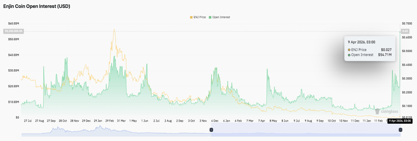 Der $ENJ-Ausblick hängt davon ab, ob Käufer die Unterstützung von 0,025 $ lange genug verteidigen, um den Widerstand von 0,0318 $ herauszufordern. Wenn sich ein bullisches Momentum aufbaut, könnte der Preis sich in Richtung 0,0456 $ und höher ausweiten. Zusätzlich würden starkes Volumen und Zuflüsse dieses Szenario unterstützen.