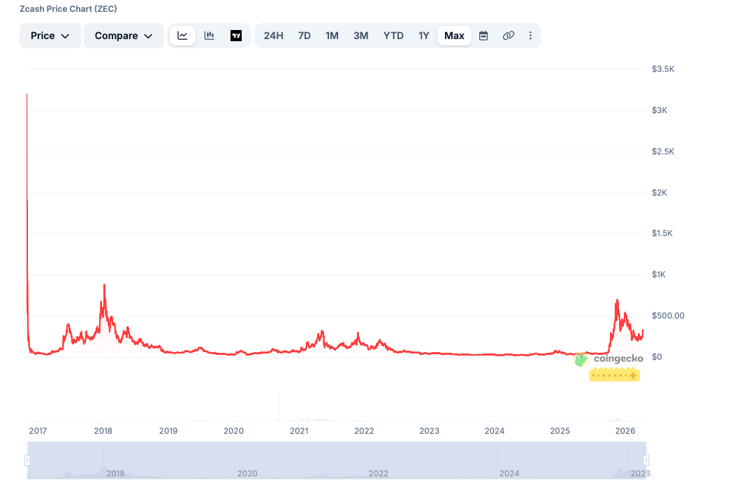 Es wird erwartet, dass $ZEC im gesamten Jahr 2026 über der Spanne von 400 bis 600 US-Dollar gehandelt wird, was auf ein Potenzial für einen deutlichen Preisanstieg im Vergleich zu früheren Jahren hindeutet.
