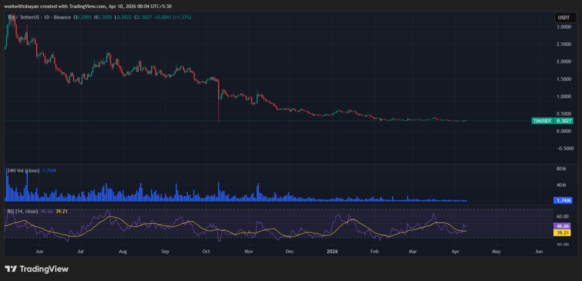 $TIA-Preisanalyse: Der $TIA-Preis steht unter Abwärtsdruck in Richtung 0,3 $