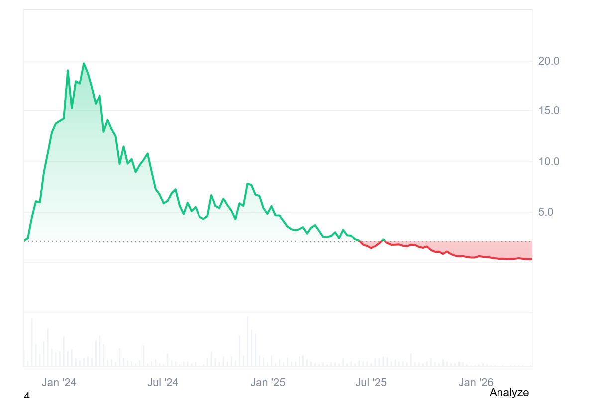 - Im Februar stürzte $TIA weiter ab und erreichte einen Tiefststand bei rund 2,3 US-Dollar.