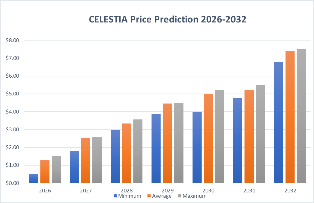 - Die Celestia-Preisprognose für 2026 deutet auf einen Höchstpreis von 1,50 US-Dollar hin.