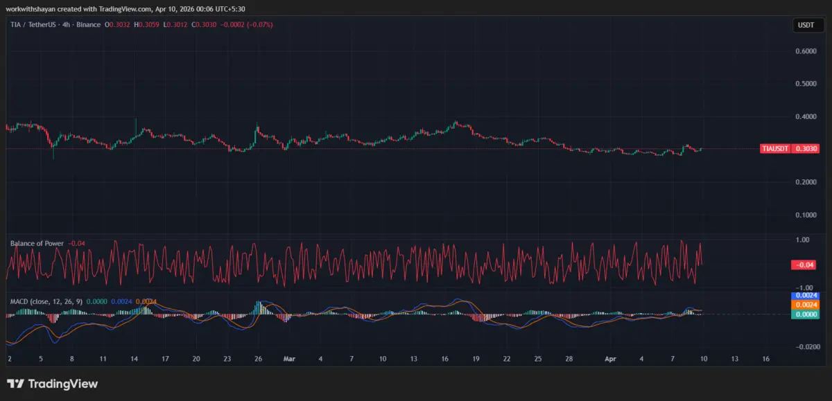 Der Kurs von $TIA versucht, sich unter 0,3 US-Dollar zu halten, da das Vertrauen der Verkäufer wächst, was zu einem Abwärtstrend führt.