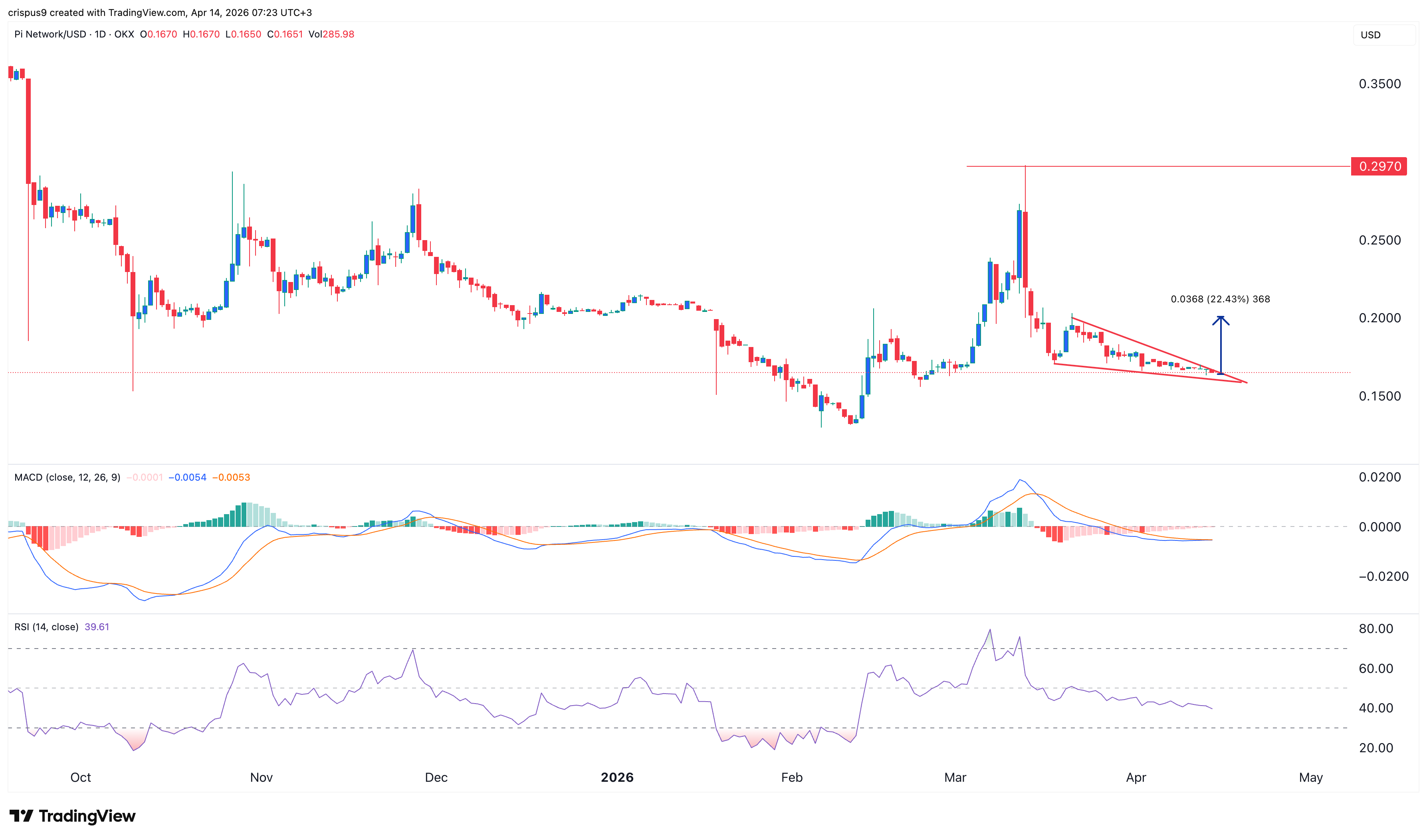 Technische Analyse des Pi Coin-Preises: Fallendes Keilmuster bildet sich