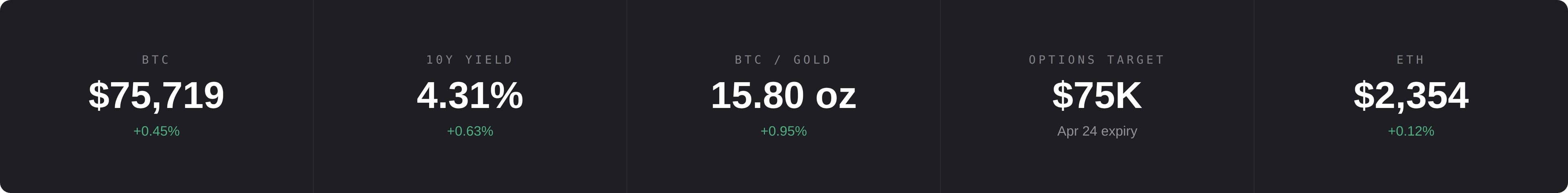 Die größte Kryptowährung überschritt heute früh kurzzeitig die Marke von 76.000 USD, nur um anschließend in einer Wiederholung des unsteten Musters vom Dienstag wieder zu fallen. Der Stopp folgt auf einen Anstieg von 10 %, der überwiegend durch Nachrichten über das Waffenstillstandsabkommen zwischen Iran und den USA vor einer Woche angetrieben wurde.