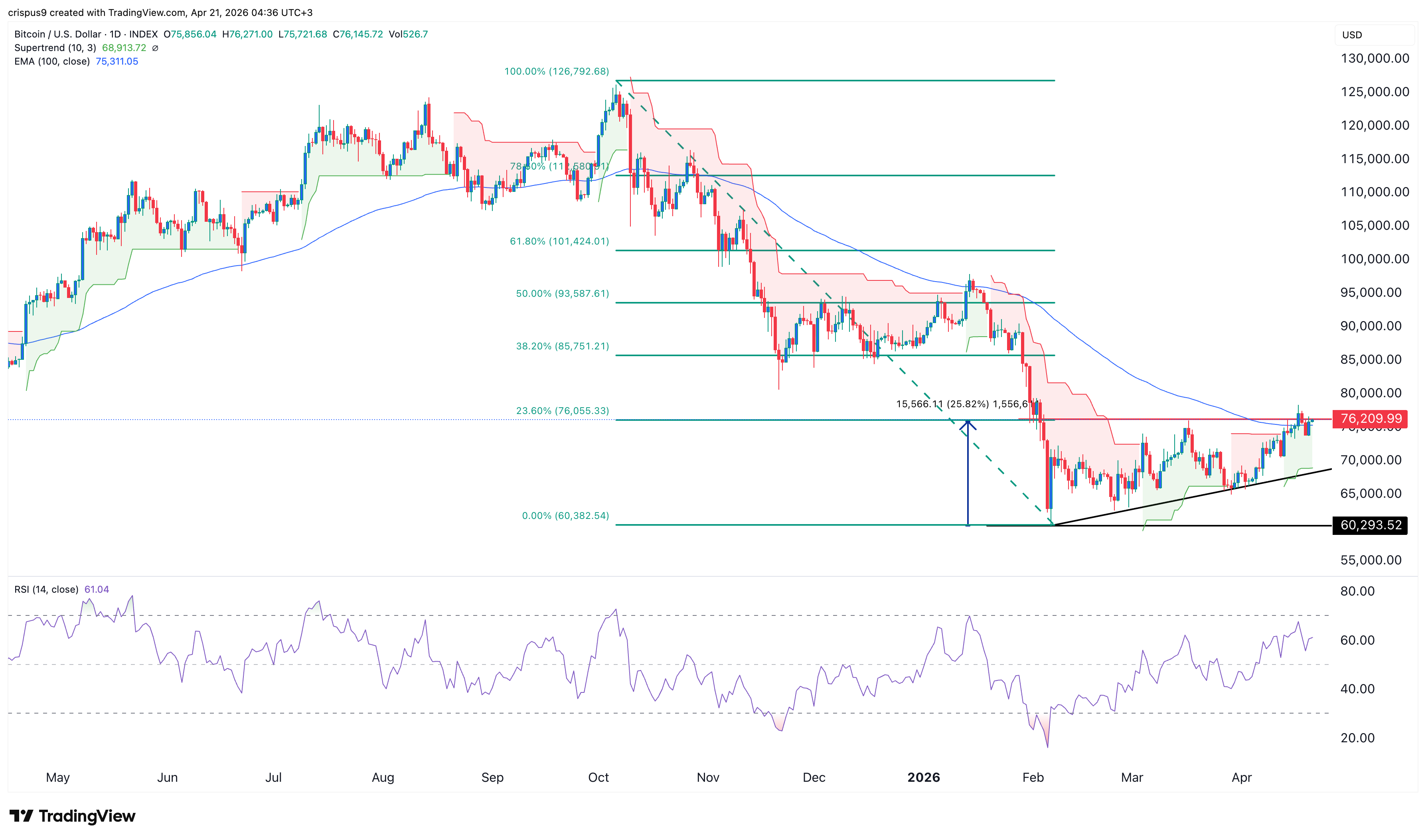 Der Bitcoin‑Kurs hat außerdem den Supertrend‑Indikator von Rot auf Grün gedreht, was ein starkes bullisches Signal in der technischen Analyse ist. Auch führende Oszillatoren wie der Relative‑Stärke‑Index (RSI) und der MACD steigen weiter.