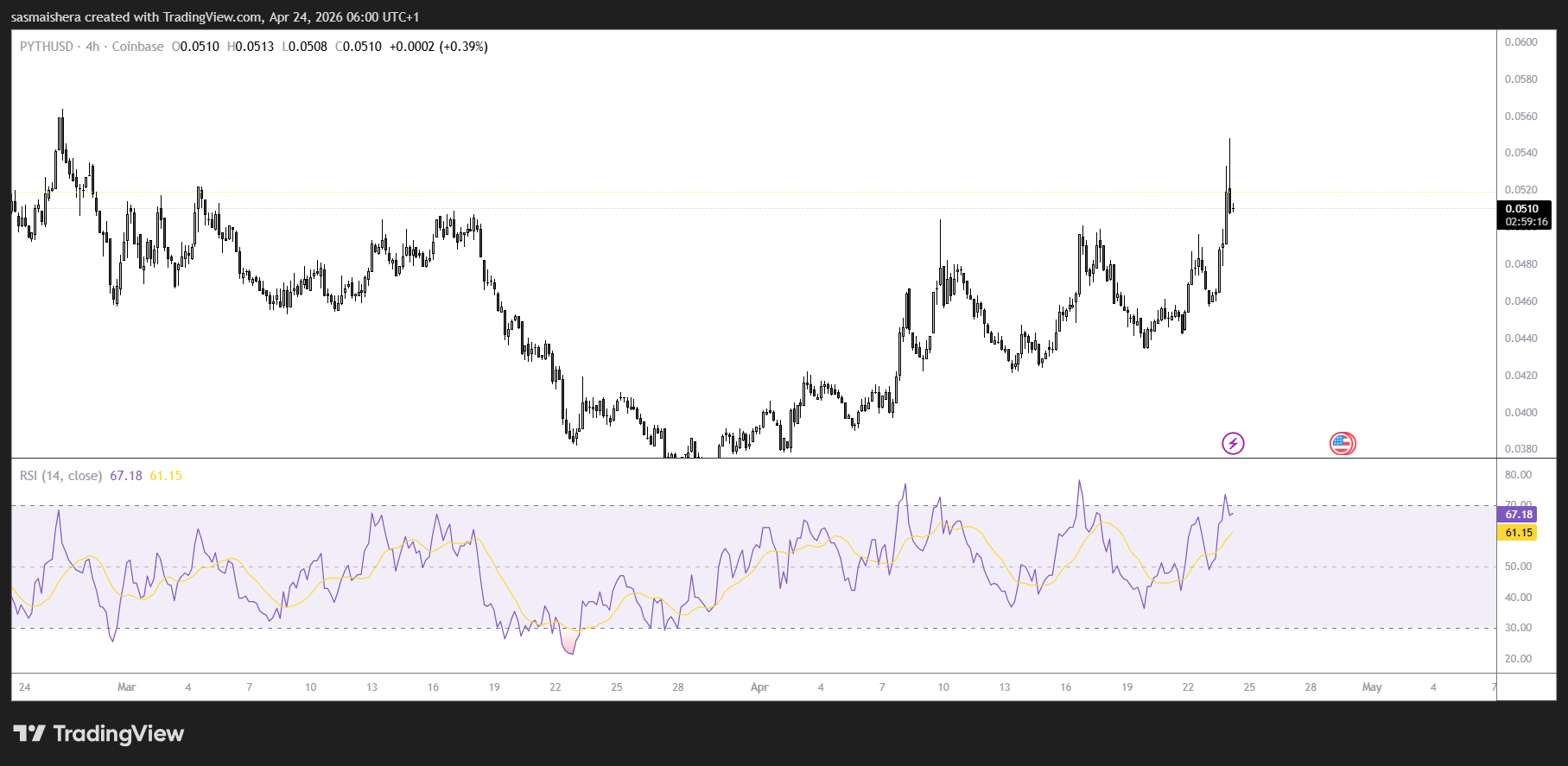 Das 4‑Stunden‑Chart von $PYTH/USD zeigt aufgrund der Rallye der letzten Stunden ein bullisches Bild.