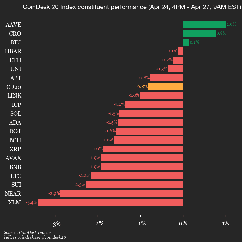 Führende Werte: AAVE (+1,0 %) und CRO (+0,8 %).