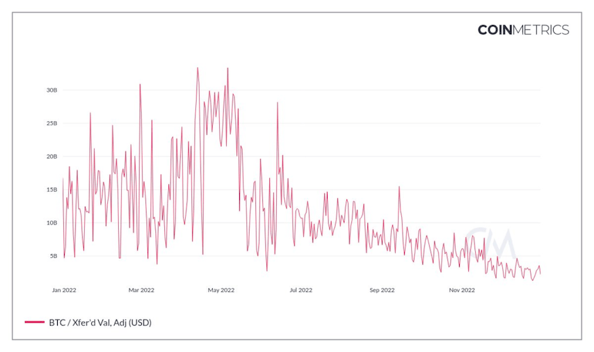 Dieses Ausmaß trotz des Bärenmarkts unterstreicht die sprunghafte Zunahme der Akzeptanz von Bitcoin und seine Rolle im globalen Finanzsystem. Die Daten zeigen aber auch, dass die Zahl der Transaktionen auf der Bitcoin-Blockchain in der zweiten Jahreshälfte 2022 deutlich gesunken ist.