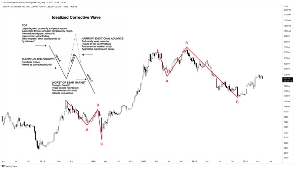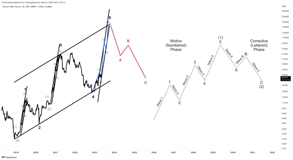 Die Anwendung des Elliott-Wave-Prinzips kann interessante Einblicke in die künftige Preisentwicklung von Bitcoin liefern, indem man die Wellenmuster der Vergangenheit untersucht und zählt. Jede Welle zeichnet sich durch ein einzigartiges entsprechendes Marktverhalten aus, das Aufschluss darüber gibt, wo sich die Top-Kryptowährung im Marktzyklus befindet.