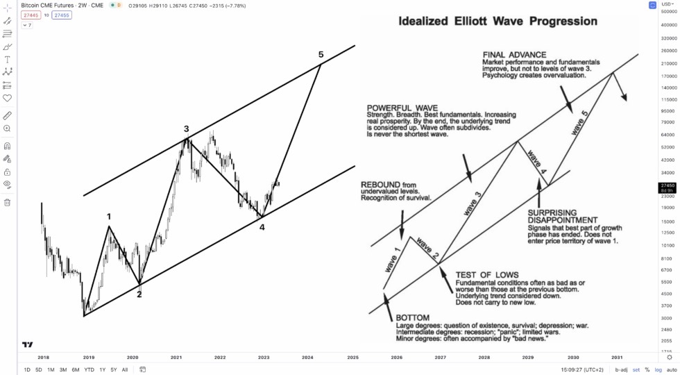 Nachfolgend gehen wir auf die ausführliche Analyse des Chartisten Tony “The Bull” ein. Dieser ist der Ansicht, dass der Bitcoin Kurs noch in 2023 ein neues Allzeithoch erreichen wird. Dennoch sollten solche Analysen immer mit Vorsicht betrachtet werden.