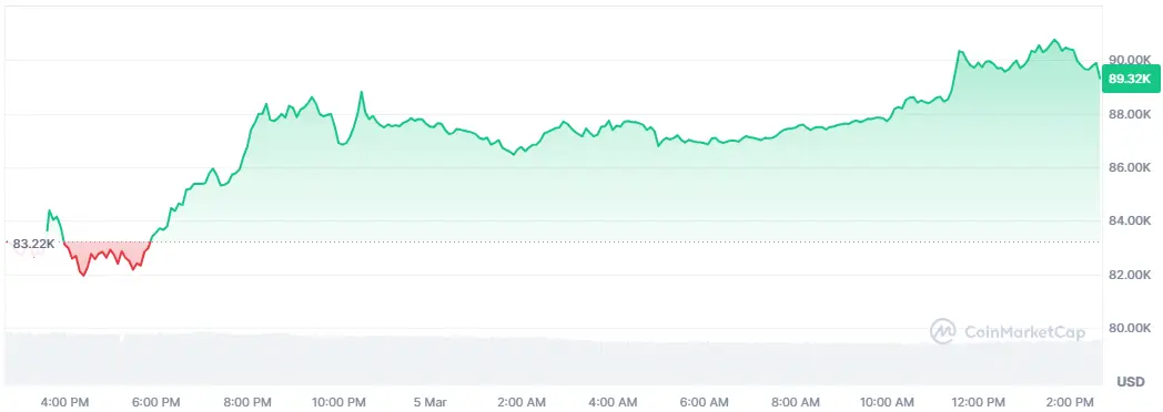 Bitcoin zeigt erneut beeindruckende Stärke und ist innerhalb von 24 Stunden um 7,7 % auf über 90.000 US-Dollar gestiegen.