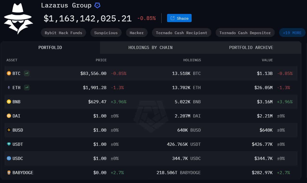 Die Bitcoin-Bestände der Lazarus-Gruppe steigen auf 1,13 Milliarden Dollar