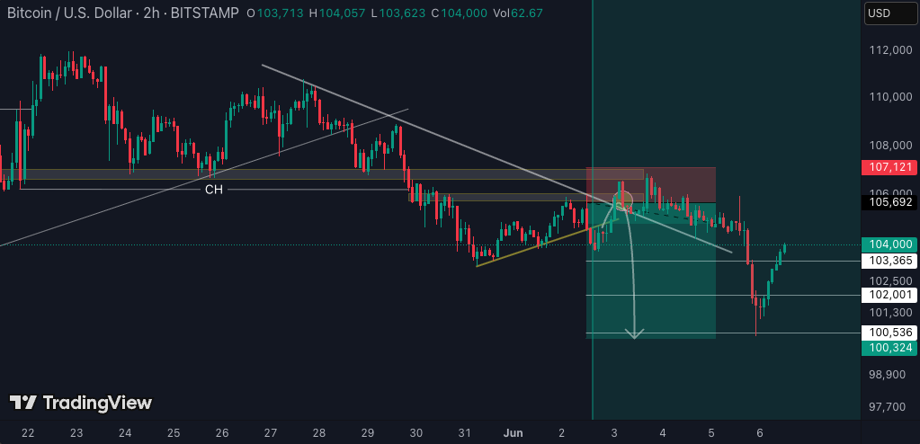 Ein Durchbruch unter dieses Niveau könnte das Vertrauen im Markt erheblich schädigen, was das Risiko von Panikverkäufen und einem weiteren Rückgang erheblich erhöht. Laut Ziddi ist der Widerstand bei 107.000 Dollar nun entscheidend. Erst wenn BTC über dieses Niveau steigt, gibt es Raum für eine Erholung.