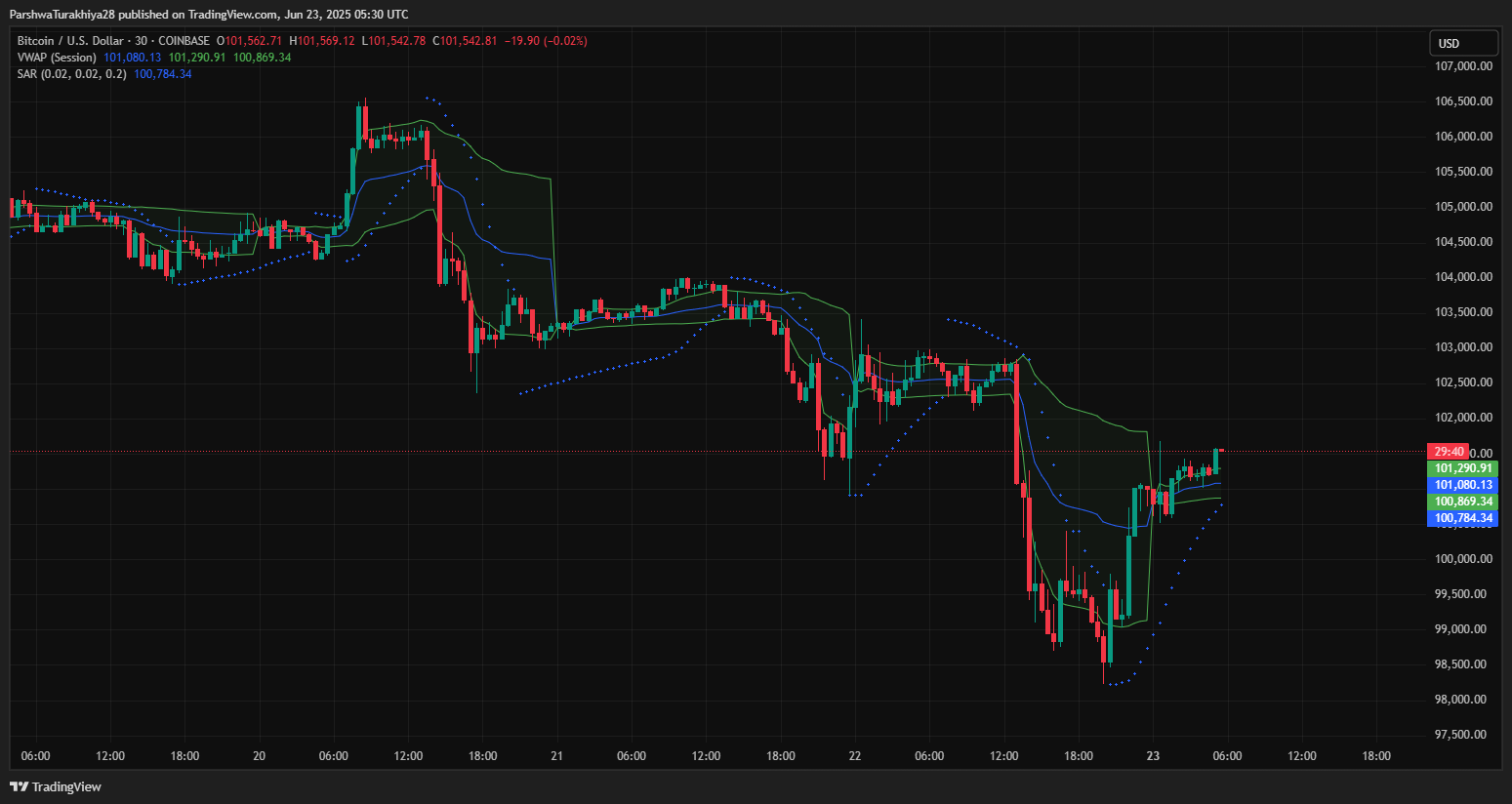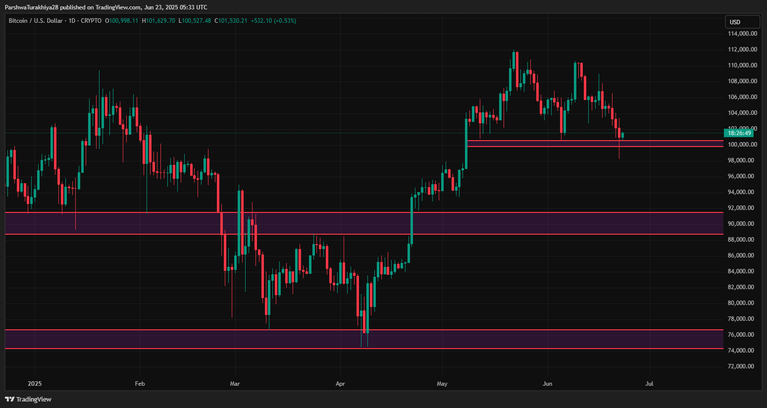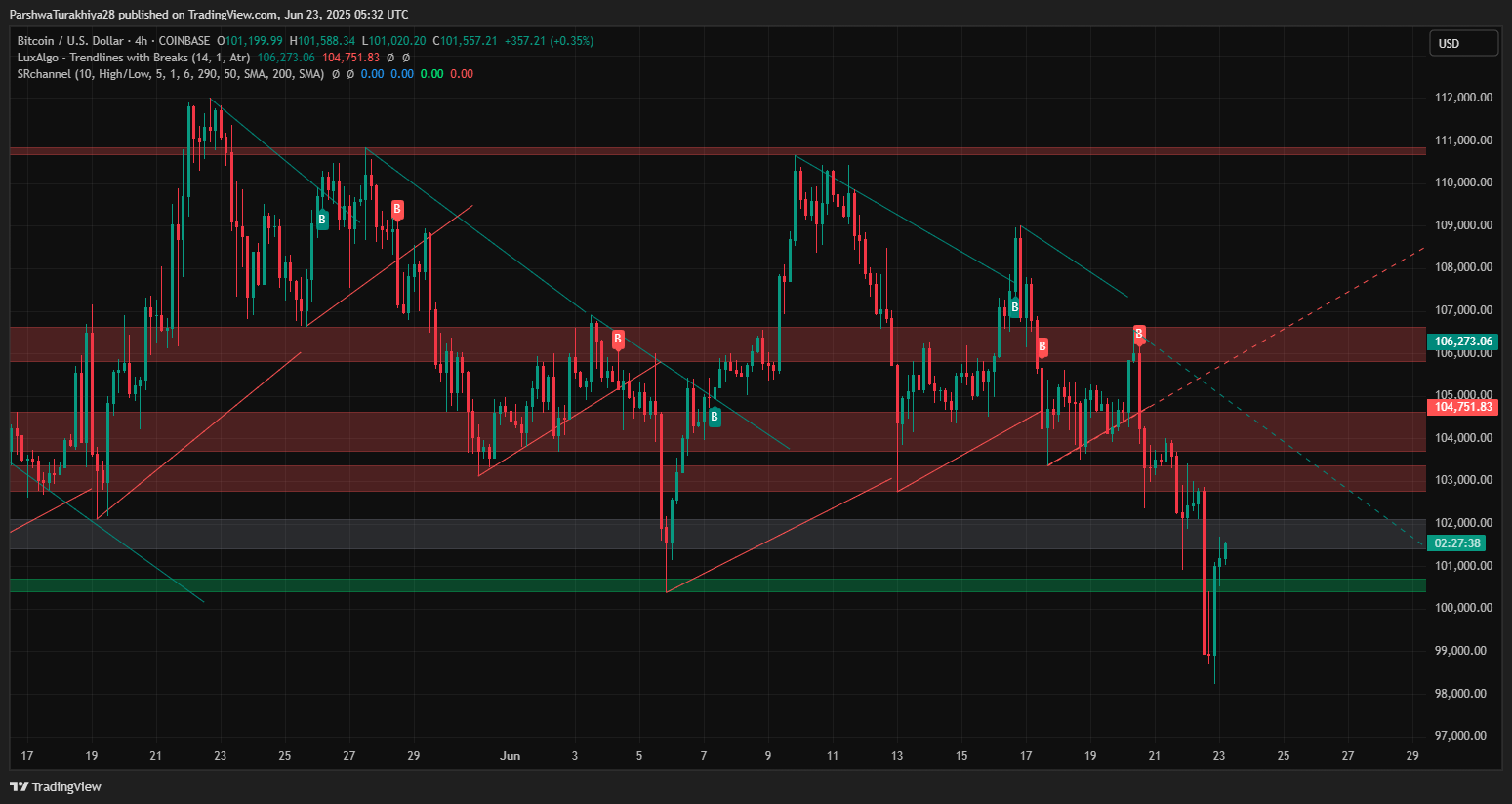 Der Bitcoin-Preis wird heute um 101.530 $ gehandelt, nachdem er sich stark von einem tiefen Ausverkauf erholt hat, der den Vermögenswert unter die Marke von 99.000 $ drückte.