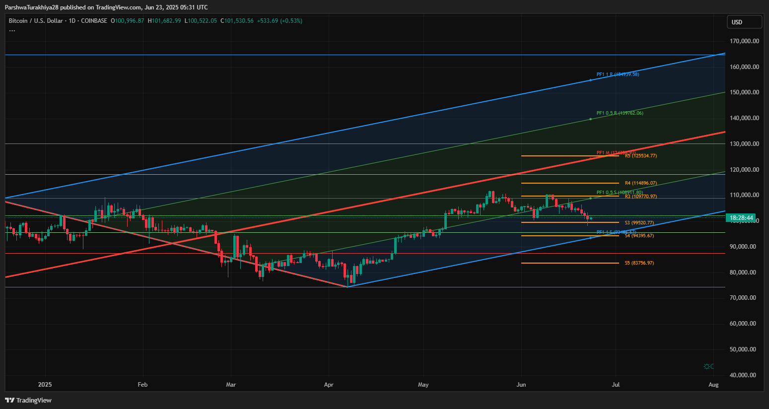 Auf der Unterseite liegt die unmittelbare Unterstützung bei 100.800 $ (VWAP) und 99.250 $ (tägliche Kanalbasis). Ein Durchbruch unter 99.000 $ würde den breiteren Abwärtstrend fortsetzen und die Tür für einen Rückgang in Richtung 94.350 $ und die 0,5-Fibonacci-Retracement-Zone öffnen.