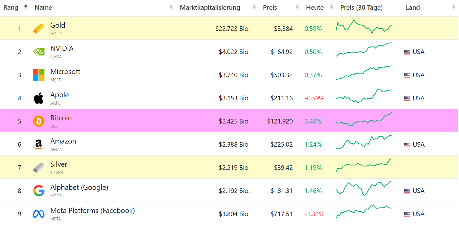 - Mit dem jüngsten Kursanstieg auf über 122.000 US-Dollar ist Bitcoin nun wertvoller als die Tech-Riesen Amazon und Alphabet. Das zeigen Daten der Vergleichplattform CompaniesMarketCap.
