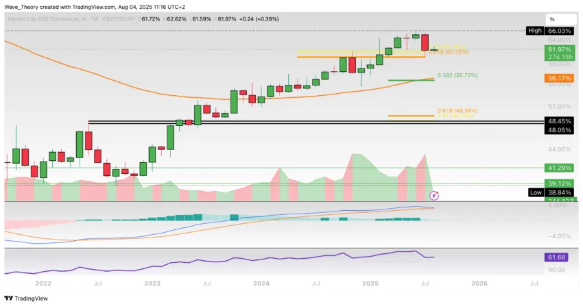 Sollte die Bitcoin Dominanz weiter fallen, könnte dies eine Altseason auslösen.