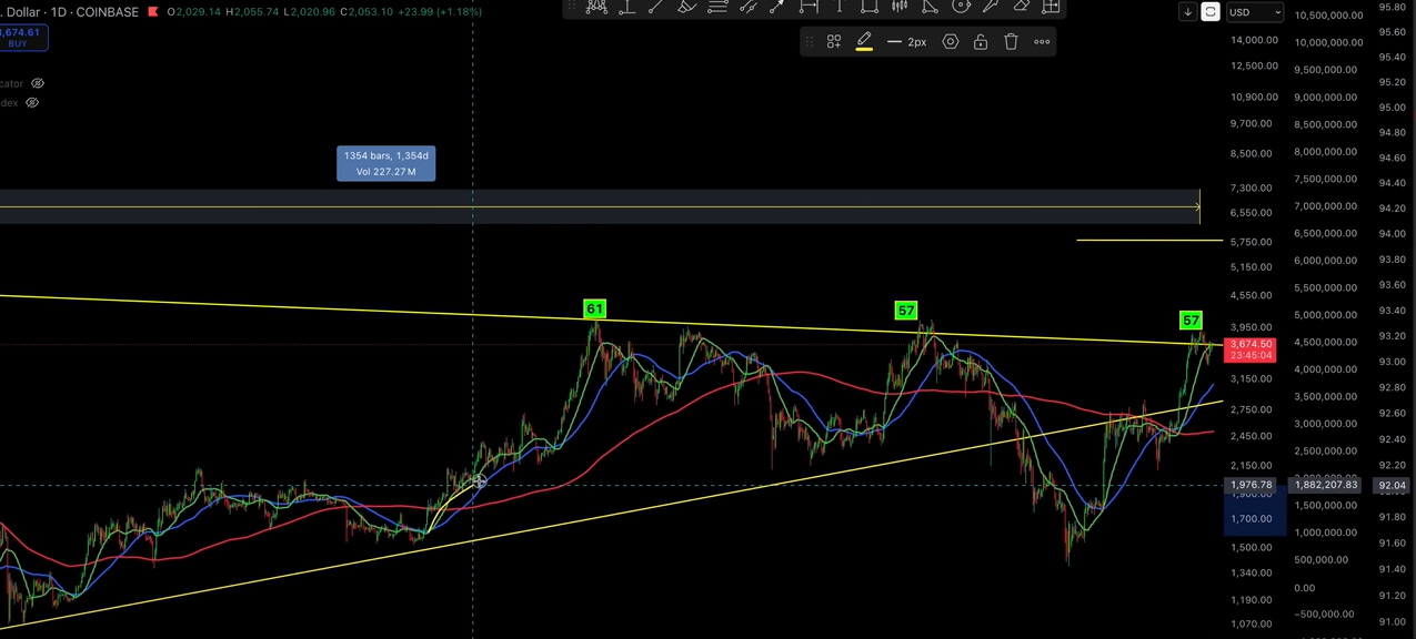 Sollte Ethereum es nicht schaffen, über 4.100 $ zu kommen, ist das wahrscheinliche Szenario eine weitere Konsolidierung. Ethereum testet derzeit eine langfristige Makro-Trendlinie, die bis zum letzten Bullenzyklus zurückreicht.