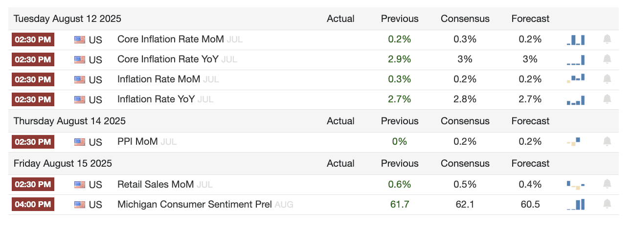 Die nächste Woche wird im Bereich der Inflation wieder bedeutend. Für Dienstag, den 12. August, ist die Veröffentlichung des Verbraucherpreisindex (CPI) angesetzt. Dieser Wert wird uns zeigen, ob tatsächlich von einem Aufwärtstrend bei der Inflation in den Vereinigten Staaten die Rede ist.