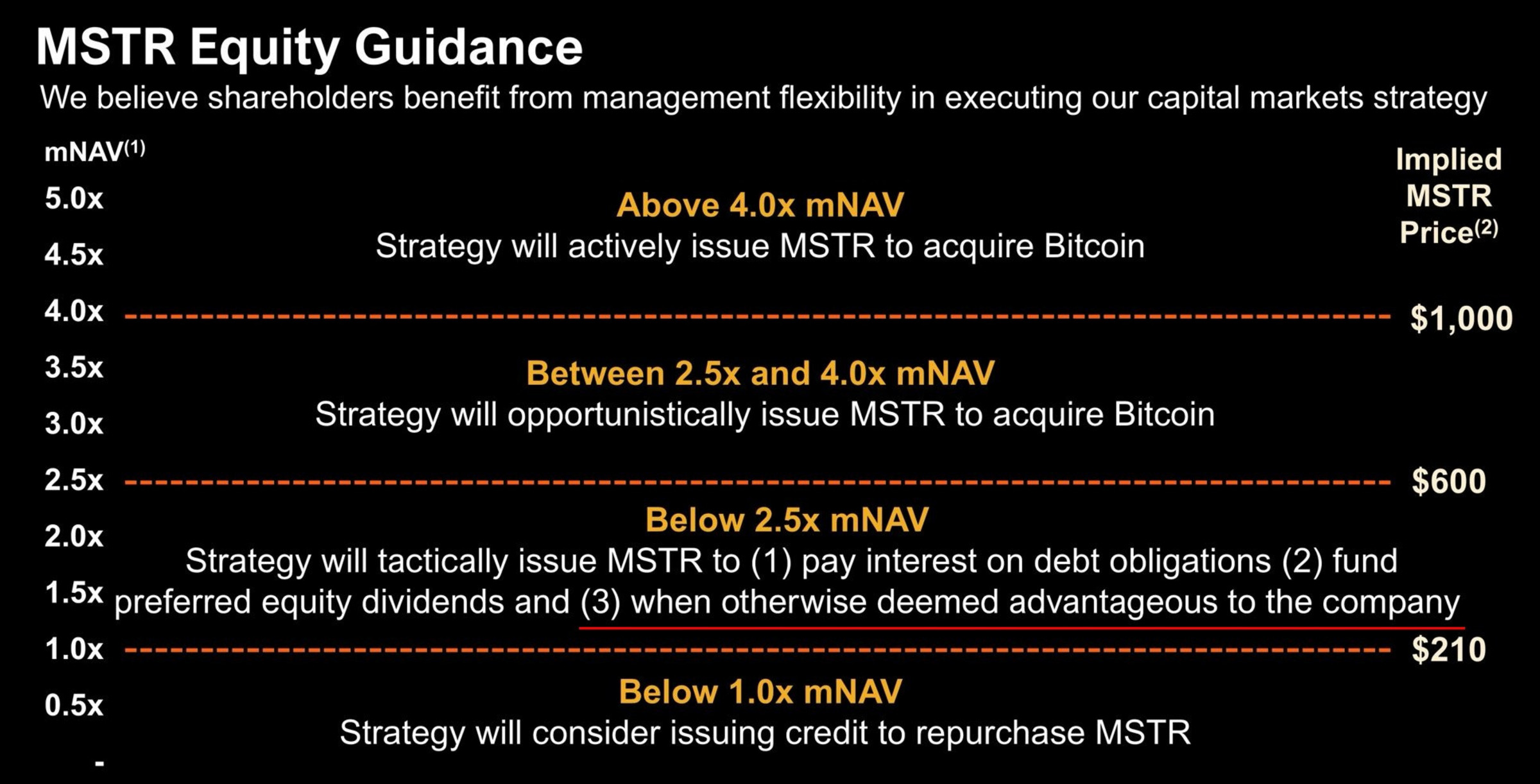 Aus diesem ging hervor, dass das Unternehmen erst ab einem mNAV von 2,5 x neue Stammaktien ausgeben wird, um Bitcoin-Käufe zu finanzieren.