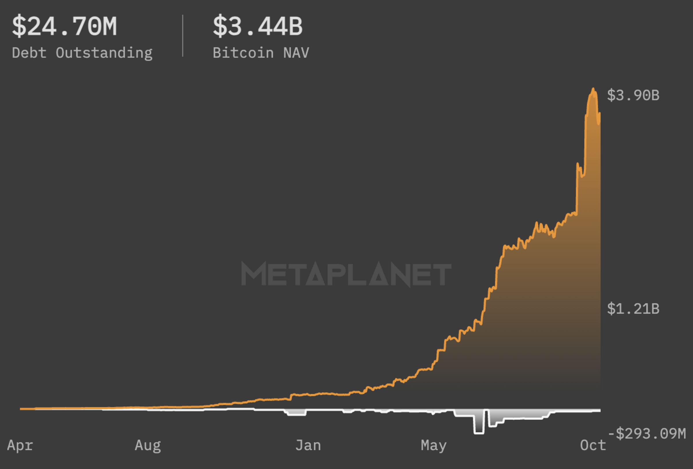 Metaplanet hält jetzt 30.823 BTC im Gegenwert von knapp 3,5 Milliarden US-Dollar. Der Bilanzwert ist knapp 250-mal so hoch wie die Marktkapitalisierung vor Beginn der Bitcoin-Strategie.