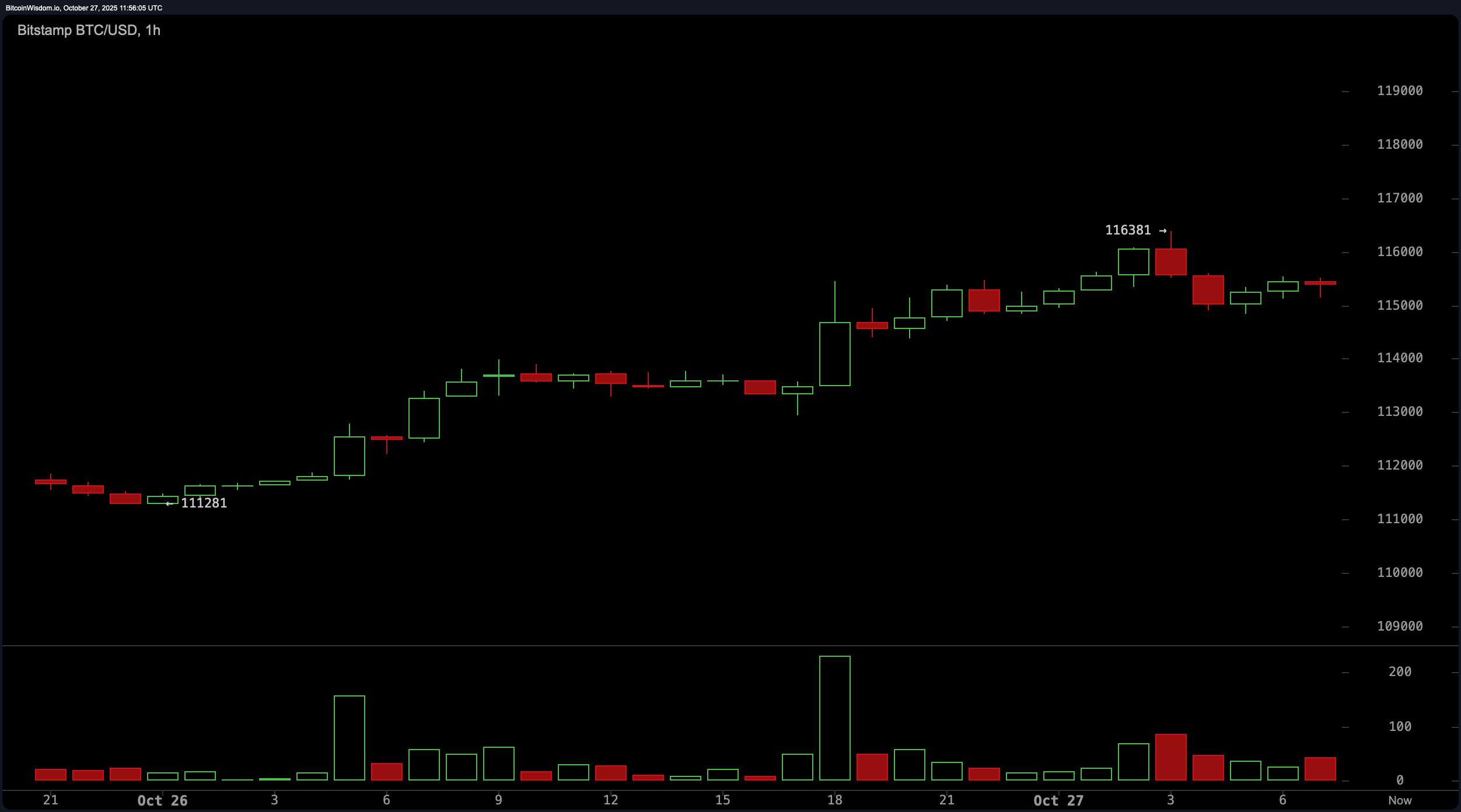 In der Zwischenzeit zeigt der 1-Stunden-Chart, dass Bitcoin eine Verschnaufpause einlegt. Nach dem Erreichen von 116.381 USD hat die Kursentwicklung seitwärts verläuft, wobei unsichere Kerzen und abnehmendes Volumen auf ein mögliches Stocken oder ein Top-Bildungsmuster hindeuten. Die Unterstützung bei 115.000 USD und 113.000 USD bleibt entscheidend, und kurzfristiger Widerstand um 116.400 USD wirkt weiterhin wie ein Türsteher, der jede Aufwärtsambition ohne ein volumenbasiertes RSVP abweist. Für Händler, die den Mikrotrend im Blick haben, könnte ein Aufschwung von 114.500–115.000 USD mit Volumen und einem starken Kerzenkörper das Interesse wiederwecken, aber ein Durchbruch unter 114.500 USD sorgt für Stirnrunzeln und Stop-Losses.