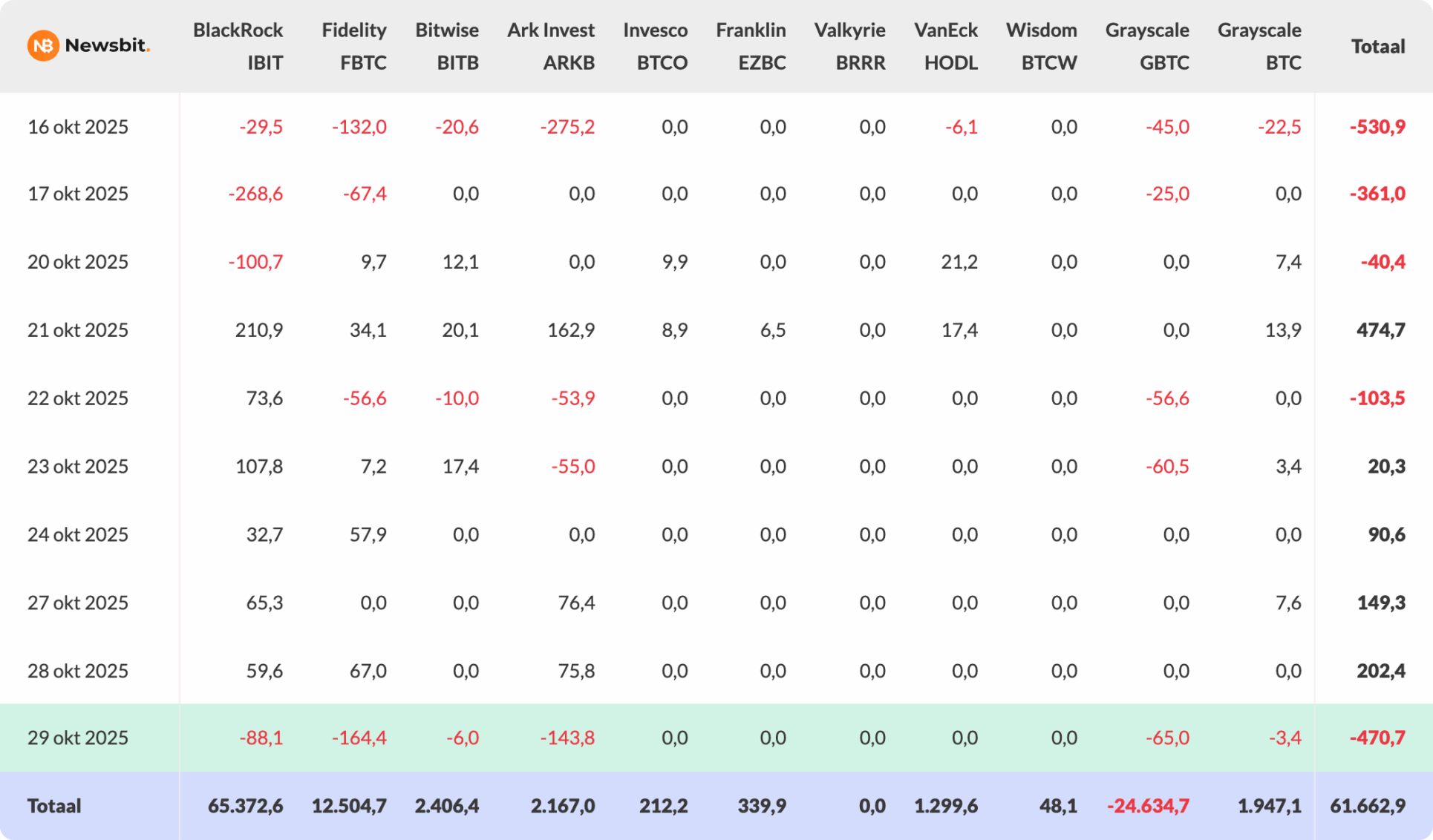 ARK Invests ARKB musste einen Rückgang um 143 Millionen Dollar verkraften. BlackRocks IBIT, der größte Bitcoin-ETF, verzeichnete in dem turbulenten Umfeld Abflüsse von 88 Millionen Dollar.