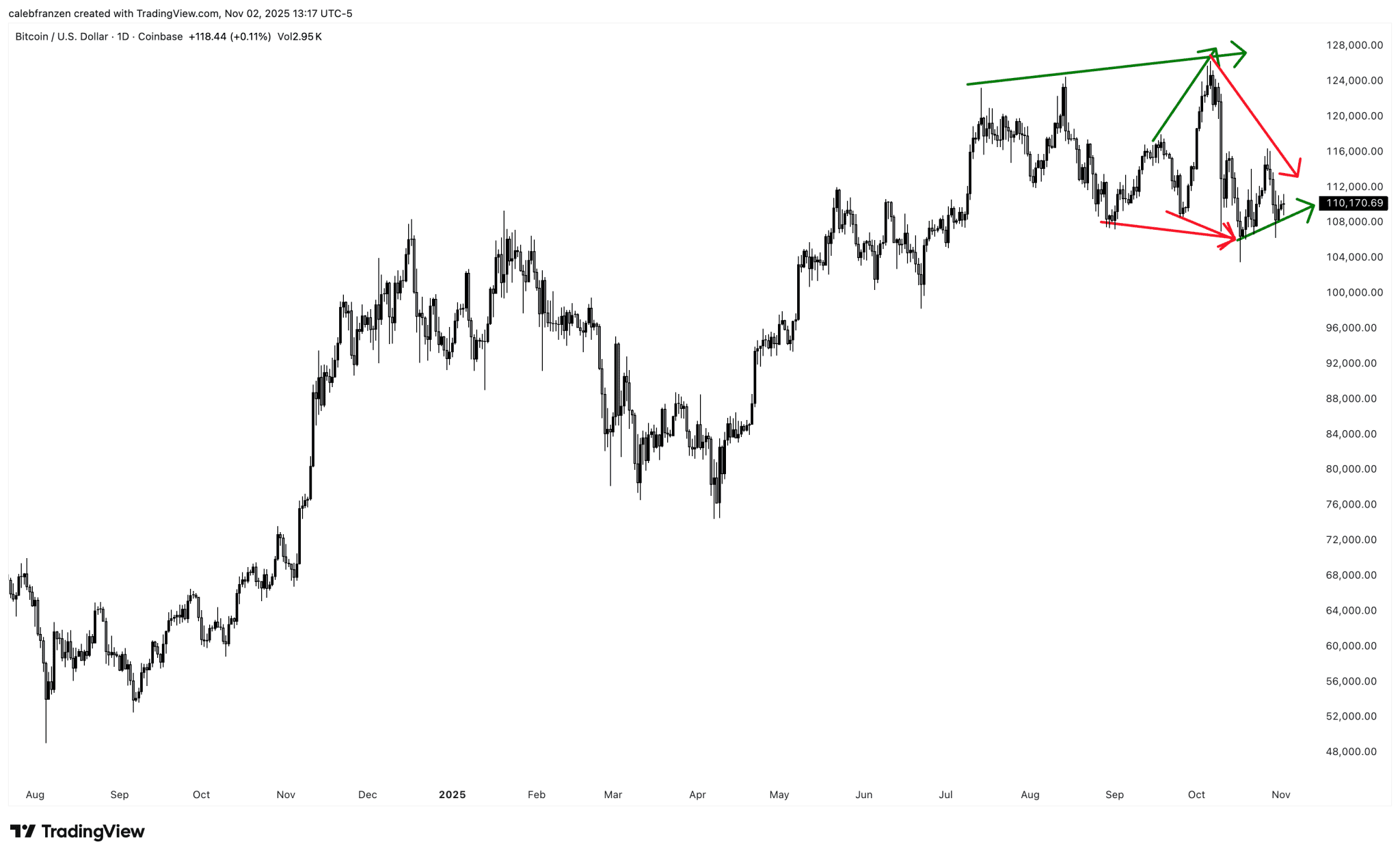 Das ist zumindest noch ein Lichtblick für Bitcoin, dass Unterstützung deutlich über 100.000 Dollar gefunden wurde. Weiterhin sehen wir derzeit, dass Bitcoin weiterhin höhere Hochs und höhere Tiefs produziert.