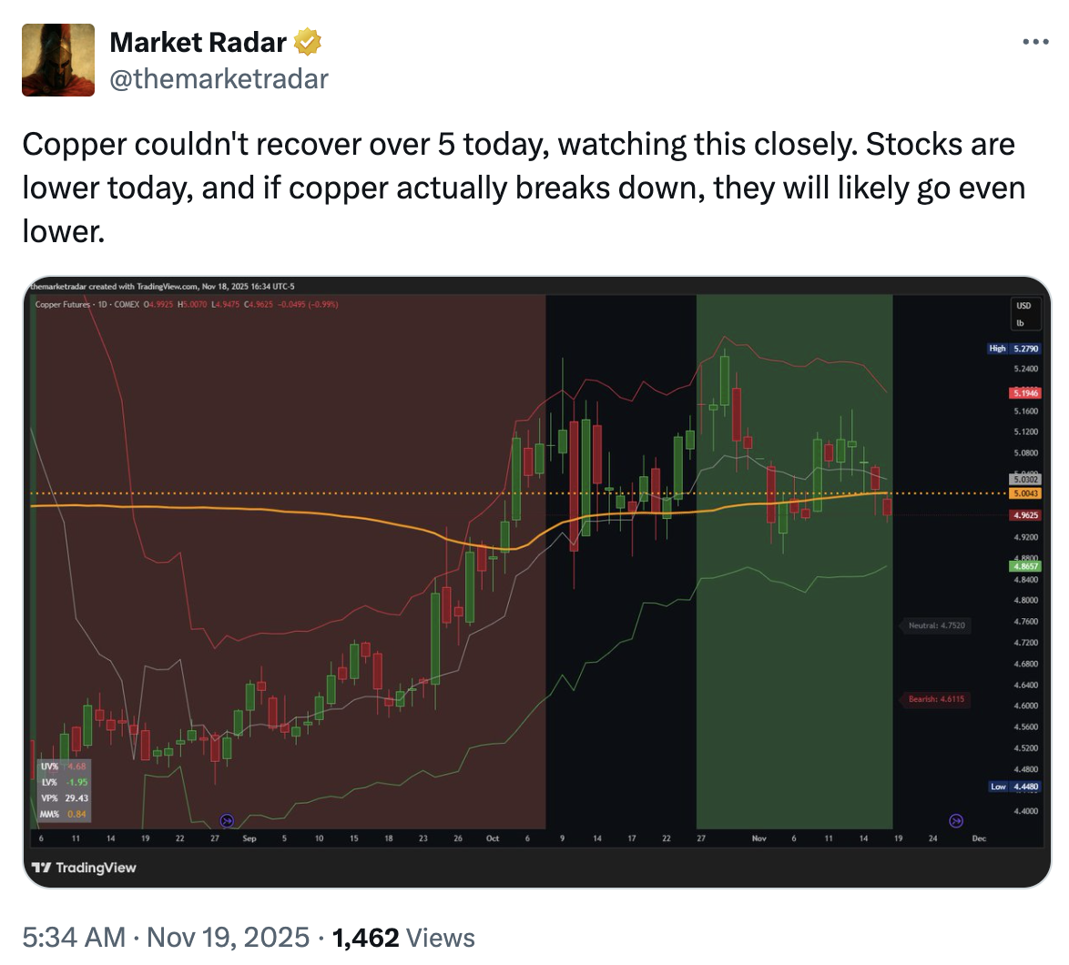Während Bitcoin unter starkem Druck steht, tut sich auch Kupfer schwer. Kupfer ist ein wichtiges Metall für die weltweite Industrie, und ein niedrigerer Kupferpreis bedeutet in der Regel, dass sich die Weltwirtschaft verlangsamt.