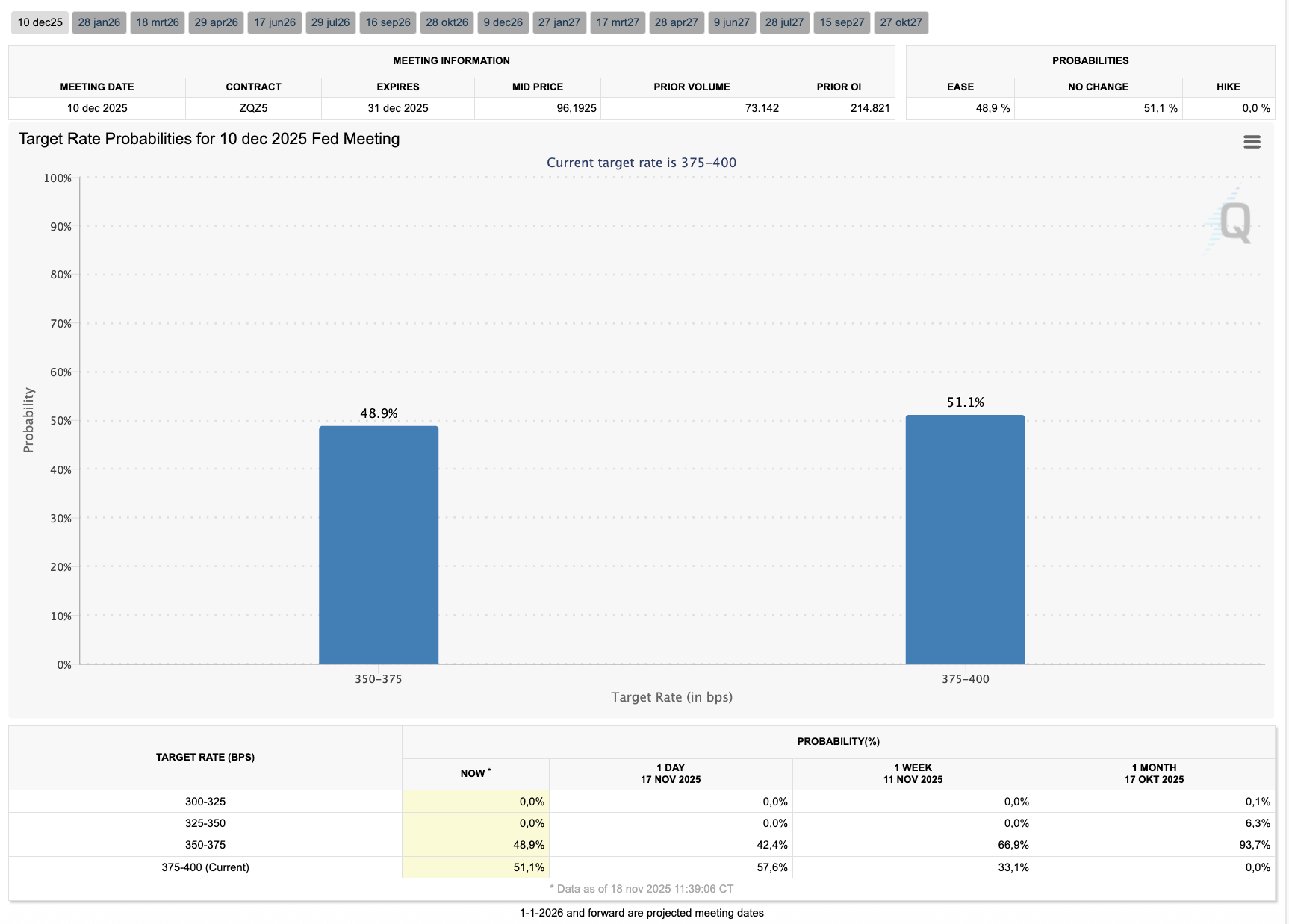 Zudem bleibt die Hoffnung, dass die US-Notenbank im Dezember doch noch eine Zinssenkung vornimmt. Vorläufig preist der Markt jedoch nur eine Wahrscheinlichkeit von 48,9 Prozent für eine Zinssenkung am 10. Dezember ein.