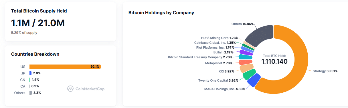 59,51Prozent der Bestände liegen bei Strategy, Quelle: www.coinmarketcap.com