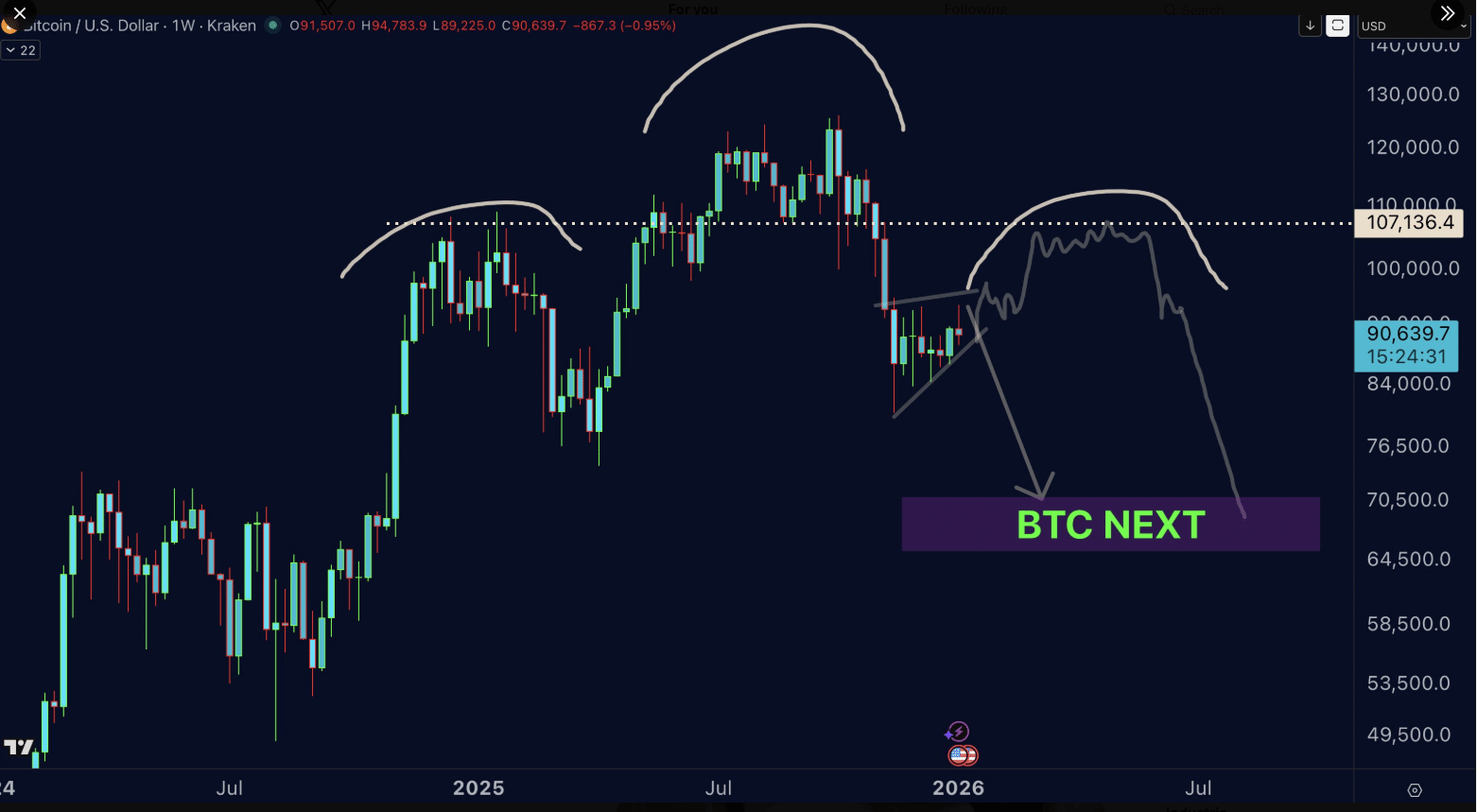 Sieht klaren Bruch kommen, Quelle: https://x.com/DrProfitCrypto/status/2010499778438939105/