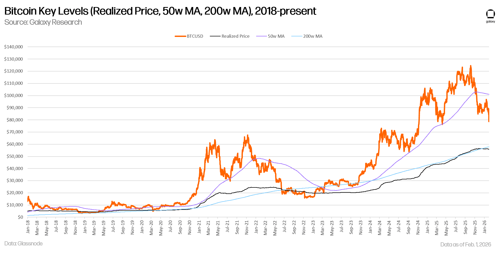 - Dies erhöhe das Risiko, dass Bitcoin tiefere Liquiditätszonen testen muss, bevor eine nachhaltige Bodenbildung erfolgt. Als potenzielle Zielzone nennt Thorn den Bereich zwischen 56.000 und 59.000 US-Dollar, was dem Realised Price entspricht.
