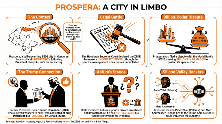 Obwohl Asfura seine Position zu Prospera nicht öffentlich bekannt gegeben hat, wird seine Regierung als potenziell unterstützend für private Investitionen angesehen, was die Lebensfähigkeit der Stadt beeinflussen und Investoren anziehen könnte.