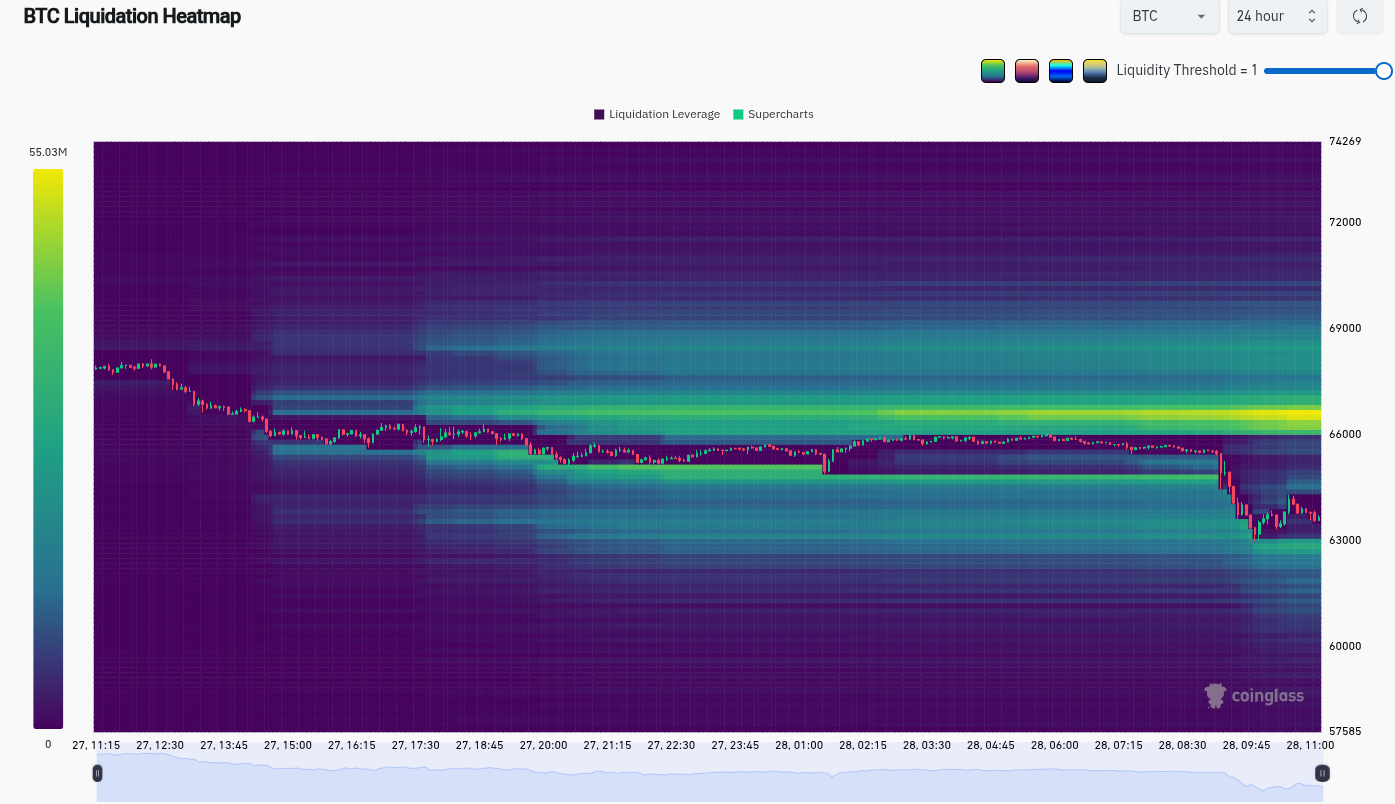 Die Daten von TradingView belegen, dass der Bitcoin-Kurs auf 63.000 US-Dollar rutschte, als die Kryptomärkte auf die unvorhergesehenen Ereignisse reagierten.