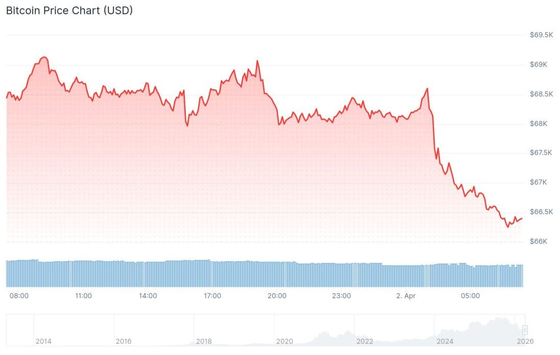Zum Zeitpunkt des Verfassens dieses Artikels steht der Bitcoin-Kurs auf der Kryptobörse Coinbase bei 66.421 Dollar. Auf der Kryptobörse Bitpanda liegt der $BTC-Preis in Euro damit bei 57.620 Euro. Im Vergleich zu vor 24 Stunden steht $BTC 2,78 Prozent im Minus.